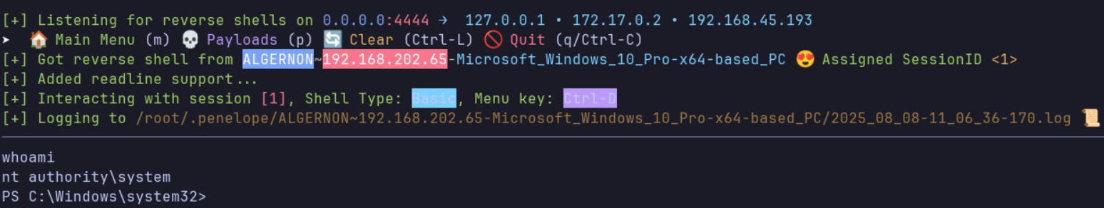 Before I run the exploit, I’ll run penelope to catch the reverse shell connection.